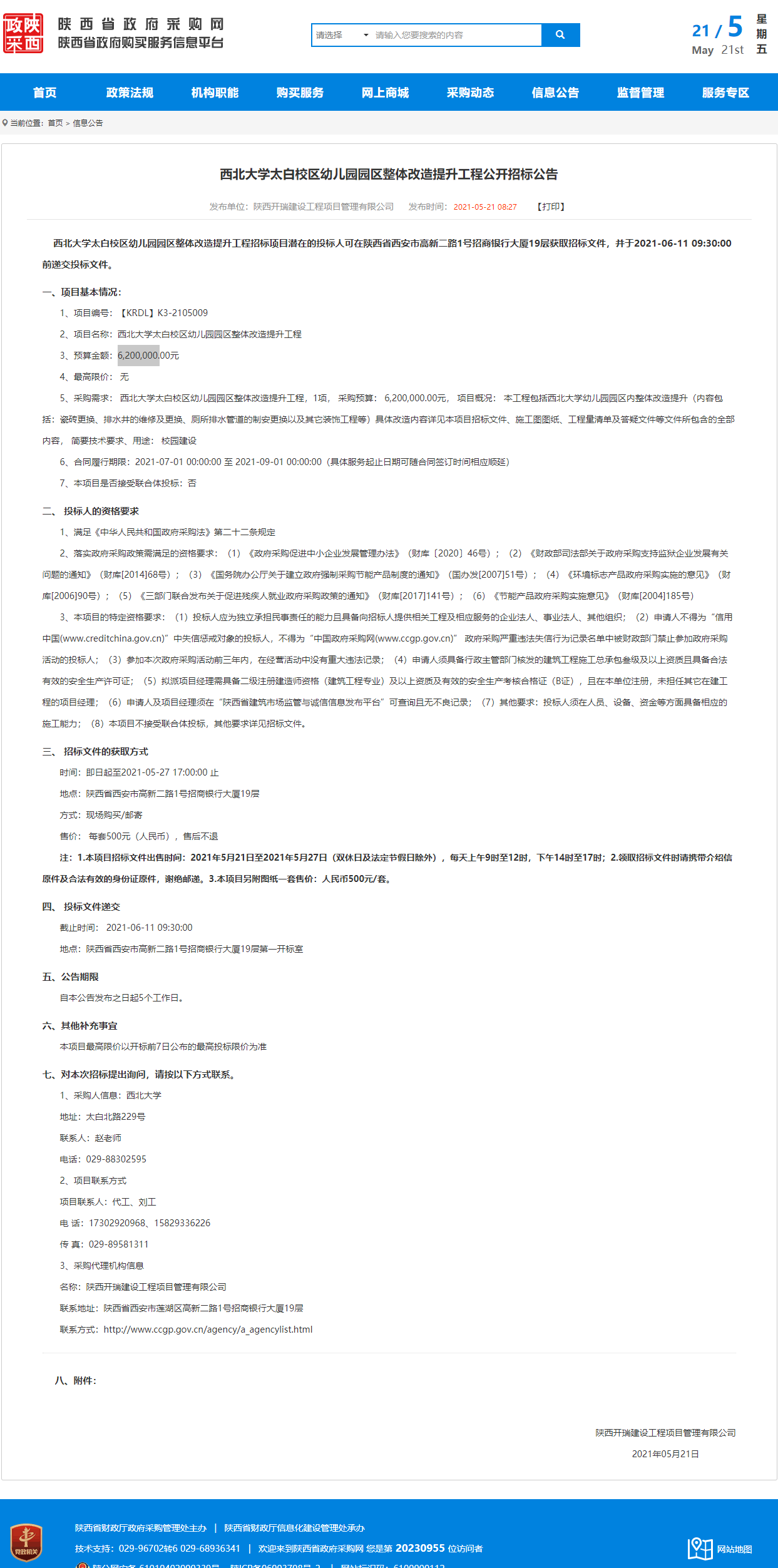 安博官方网页版太白校区幼儿园园区整体改造提升工程公开招标公告
